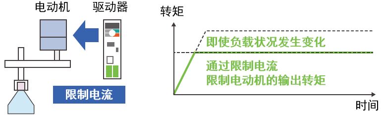 通過轉(zhuǎn)矩限制功能,可確保電動機(jī)不會輸出任意設(shè)定值以上的轉(zhuǎn)矩。 實(shí)現(xiàn)穩(wěn)定的速度運(yùn)行。