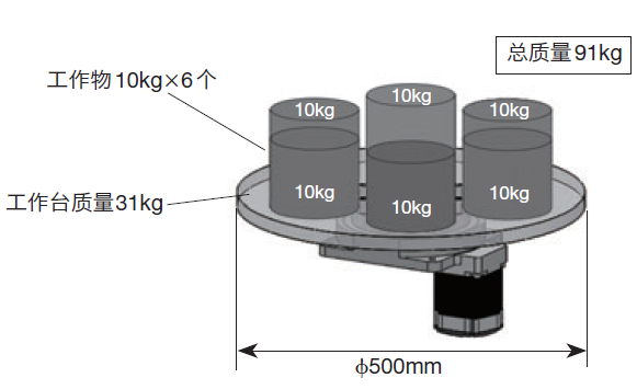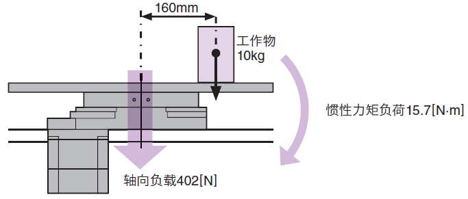 例 距工作臺(tái)中心160mm的位置加載工作物驅(qū)動(dòng)時(shí)。