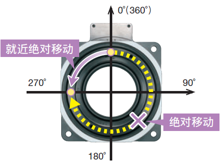 例) 從0° 的位置移動(dòng)到270° 時(shí),自動(dòng)選擇逆時(shí)針方向 的最短的旋轉(zhuǎn)方向進(jìn)行驅(qū) 動(dòng)。