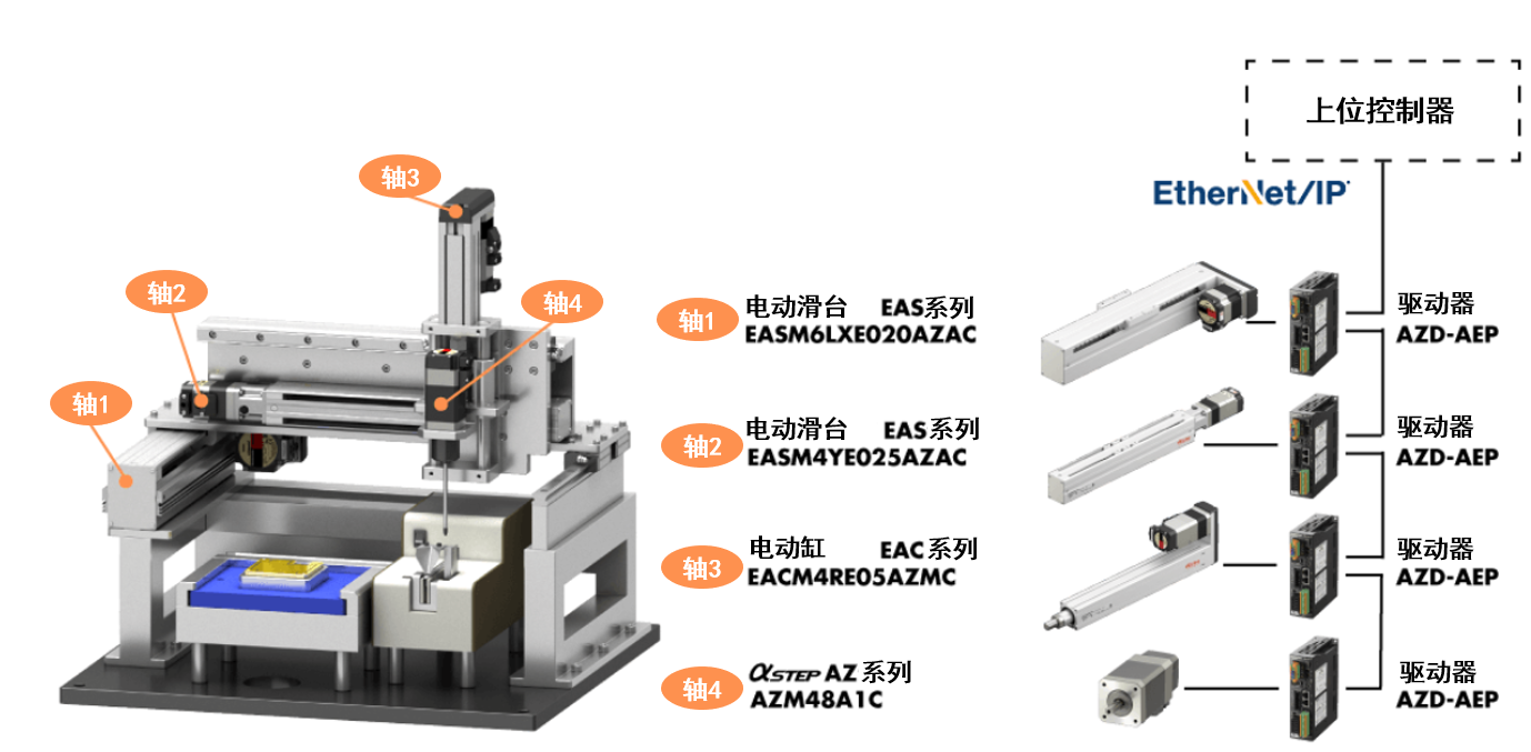 各軸由EtherNet/IP進(jìn)行控制。