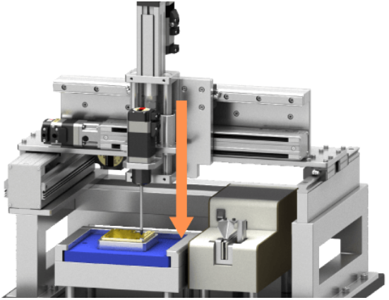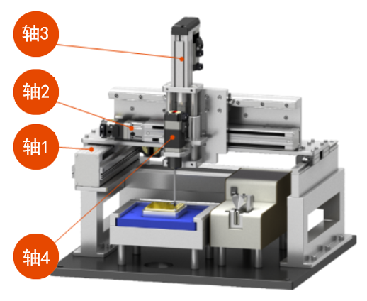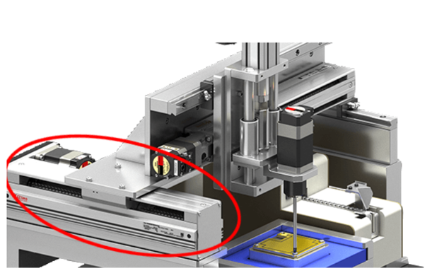 是由直交機(jī)器人(龍門架單元)及螺絲旋緊軸構(gòu)成的螺絲旋緊裝置。直交機(jī)器人(龍門架單元)迎合四處螺絲位置運(yùn)作,通過AZ系列電動(dòng)機(jī)進(jìn)行螺絲旋緊。通過此裝置,使原本手動(dòng)進(jìn)行的擰螺絲操作實(shí)現(xiàn)自動(dòng)化,并且有助于裝置尺寸的小型化、減輕作業(yè)人員負(fù)擔(dān)及作業(yè)時(shí)間平準(zhǔn)化。