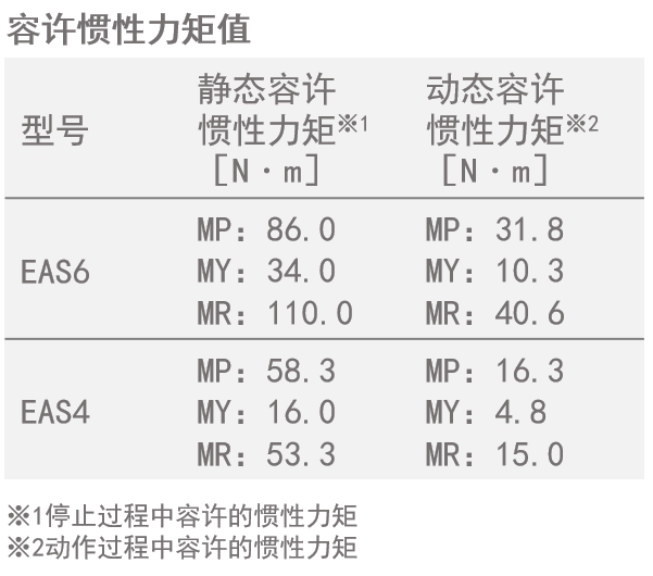 ●按壓力及負(fù)載,是根據(jù)EAS6的靜態(tài)容許慣性力矩110.0N·m計(jì)算除的數(shù)值。(未考慮板的重量。)