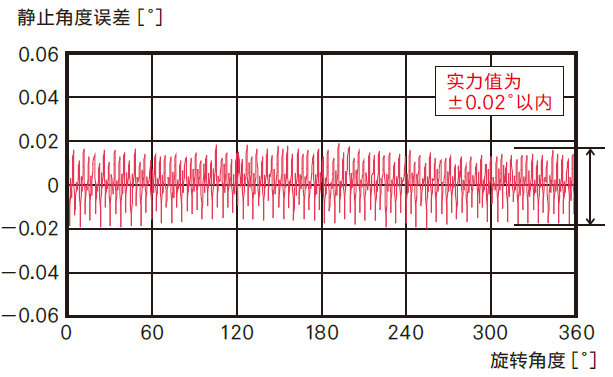 下面是αSTEP AZ系列整步運(yùn)行是的靜止角度誤差實(shí)測(cè)值??梢娡V咕葹椤?.02°的高精度定位。