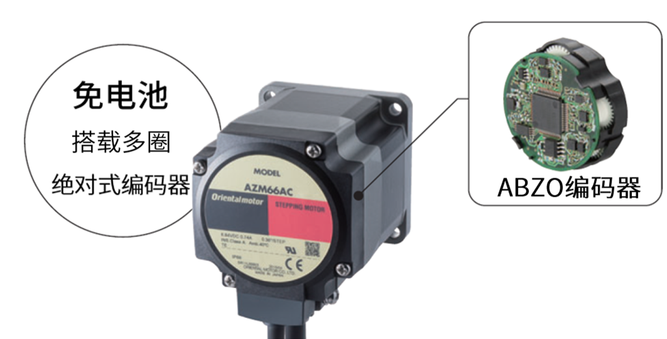 αstep AZ系列搭載絕對(duì)式編碼器: 無需電池就能實(shí)現(xiàn)絕對(duì)方式的定位。