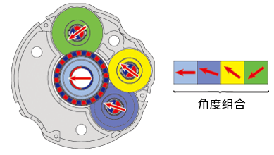利用齒數(shù)比產(chǎn)生的相位差,以齒為單位檢測(cè)出齒輪相位,并根據(jù)相位的組合可算出多次旋轉(zhuǎn)后的坐標(biāo)。