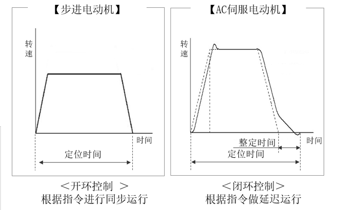 伺服電動(dòng)機(jī)則需要計(jì)算編碼器的反饋和脈沖指令的差值,并按照這一差值控制電動(dòng)機(jī)旋轉(zhuǎn),這個(gè)過程需要一定的時(shí)間。脈沖輸入的位置指令和實(shí)際的電動(dòng)機(jī)旋轉(zhuǎn)發(fā)生延遲,電動(dòng)機(jī)停止時(shí)這一時(shí)間差就是整定時(shí)間。
