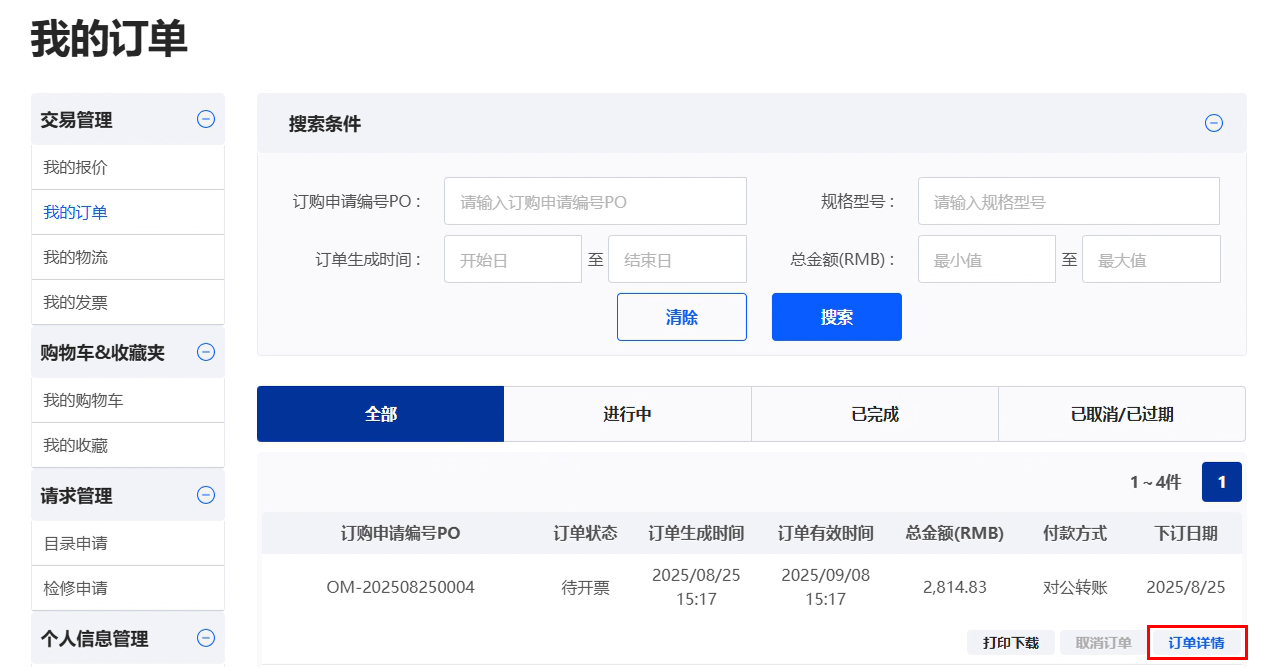 ① 登錄賬戶,進(jìn)入 個(gè)人中心-我的訂單 頁面。