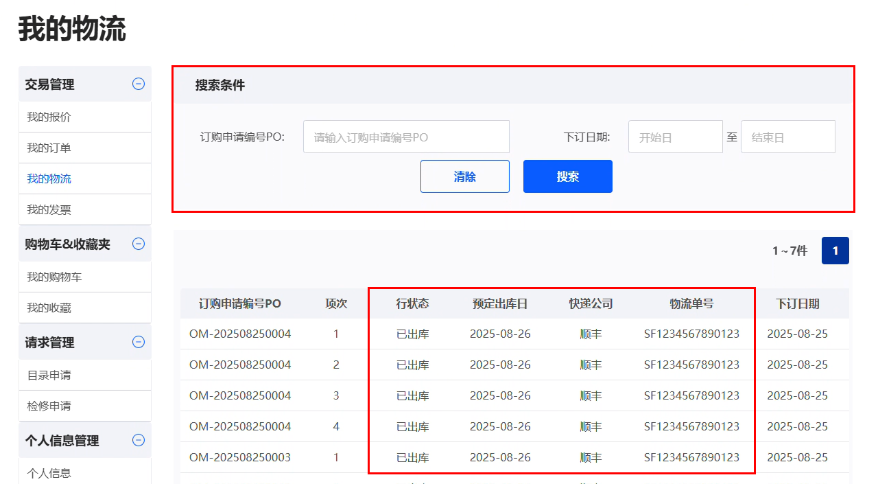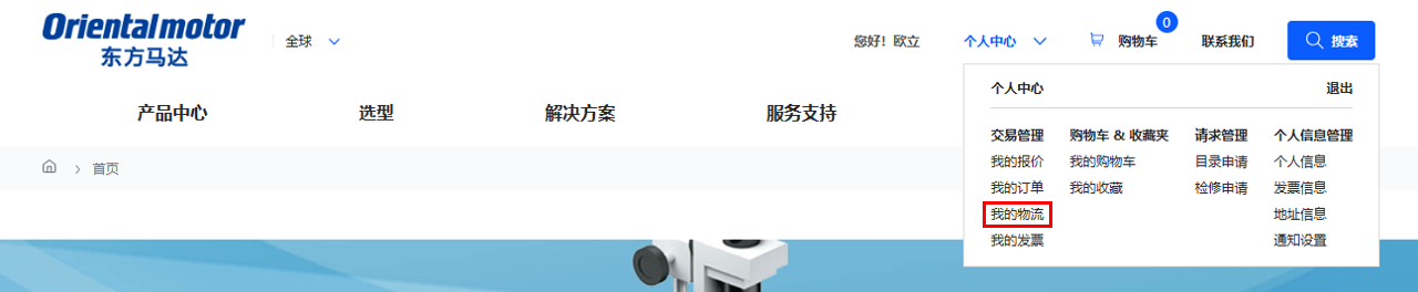 ① 登錄賬戶,進(jìn)入 個(gè)人中心-我的物流 頁面。