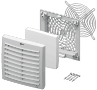 適用于電控柜的通風(fēng)和冷卻的面板、防護(hù)網(wǎng)、過(guò)濾網(wǎng)、螺絲的套件品。 請(qǐng)與我們的軸流風(fēng)扇(另售)配合使用。