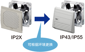 為了方便客戶自行組裝風(fēng)扇,吸氣側(cè)和排氣側(cè)都可以自由更換。(IP54規(guī)格除外)