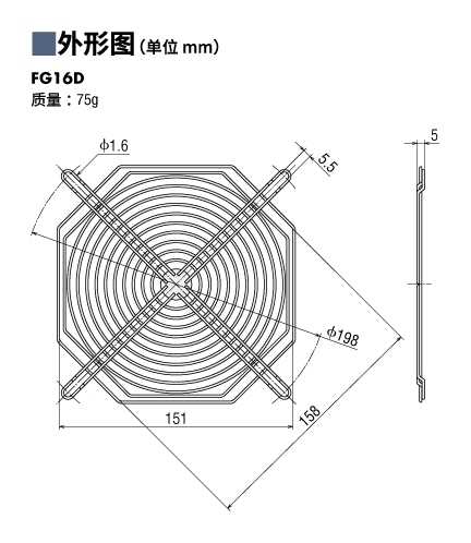 (適用軸流風(fēng)扇的尺寸: □160 mm)
