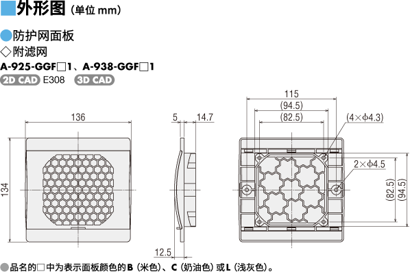 說明 濾網(wǎng)面板(1片 顏色:米色)、鐵制防護(hù)網(wǎng)(1片)、風(fēng)扇安裝用螺絲、面板安裝用螺絲的套件品。