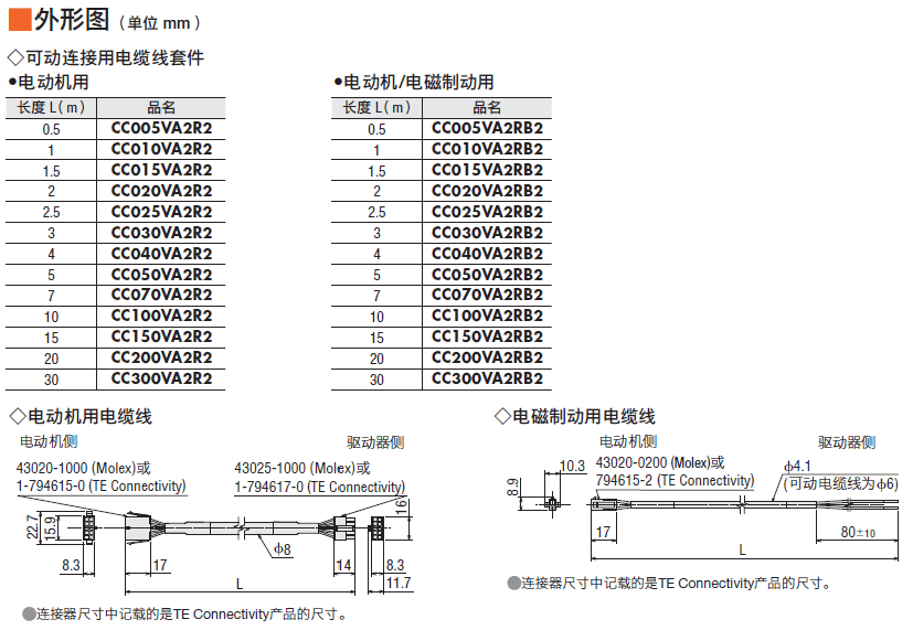 | 說明 | 電動機(jī)與驅(qū)動器間連接,或電動機(jī)與電纜線間中繼時必需的可動電動機(jī)用電纜線。請于電動機(jī)安裝在可動部,電纜線需彎曲時使用。長度0.5 m |