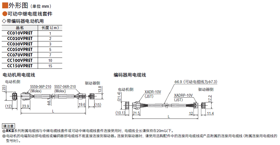 | 說明 | 電動機(jī)與電纜線間的中繼用可動電動機(jī)用電纜線、可動編碼器用電纜線套件。請于電動機(jī)安裝在可動部,電纜線需彎曲時(shí)使用。長度1 m |