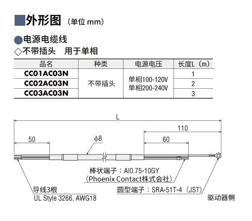 | 說明 | 單相100-120 V/200-240 V用 長度1 m |