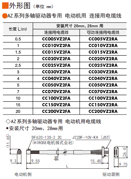 | 說明 | 請于安裝尺寸20 mm、28 mm的電動機(帶電磁制動除外)與驅(qū)動器間連接時使用。長度2.5 m |