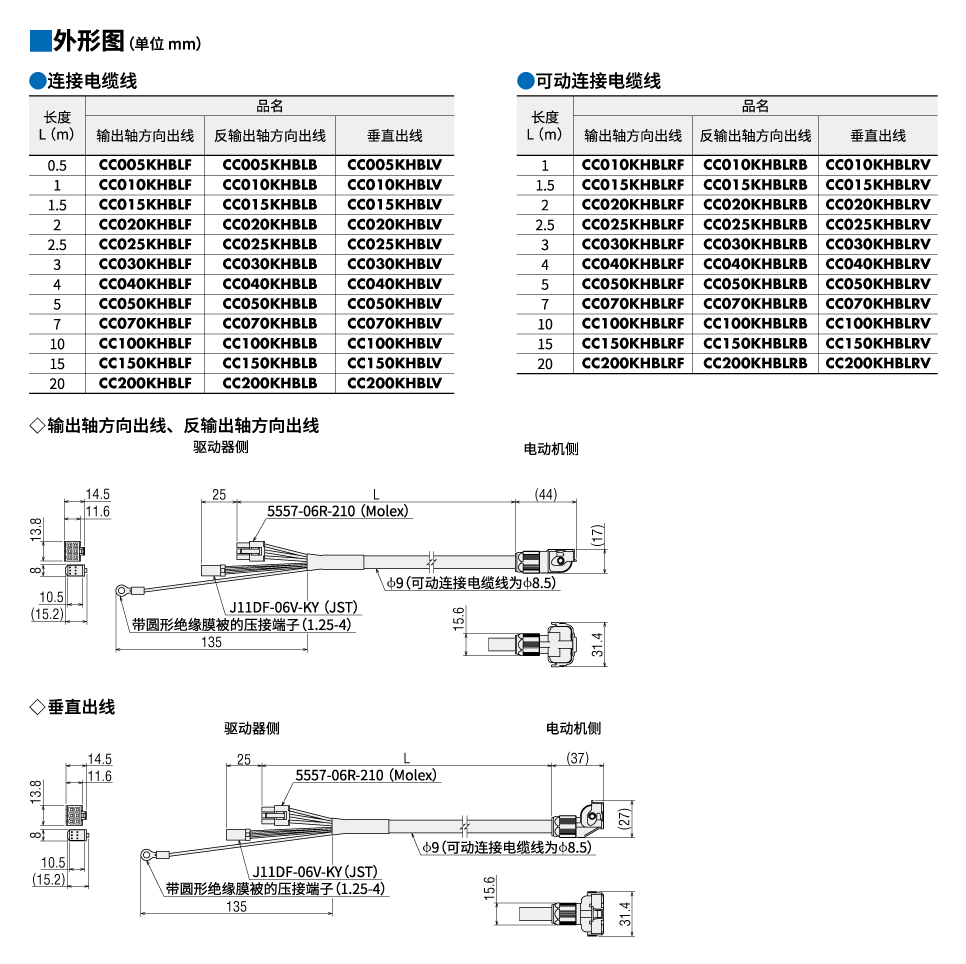 | 說(shuō)明 | 可動(dòng)連接電纜線 垂直出線 長(zhǎng)度3 m 請(qǐng)于電纜線需反復(fù)彎曲時(shí)使用。 |