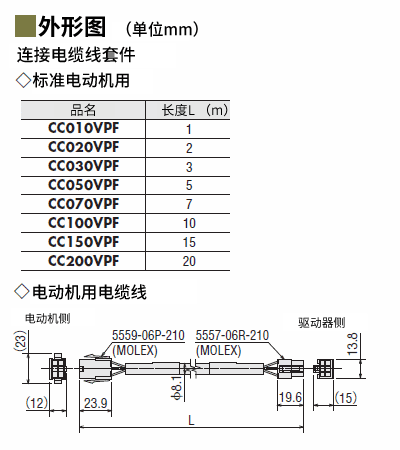 | 說(shuō)明 | 電動(dòng)機(jī)與驅(qū)動(dòng)器間連接,或電動(dòng)機(jī)與電纜線間中繼時(shí)必需的電動(dòng)機(jī)用電纜線。長(zhǎng)度3 m |
