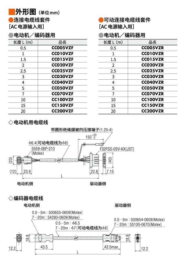 說明 電動機與驅(qū)動器間的可動電動機電纜線。請于電動機安裝在可動部,電纜線需彎曲時使用。長度15 m