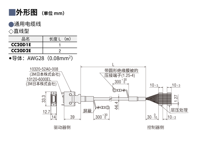 | 說明 | 電纜線一端配備了可與驅(qū)動器簡單連接的半間距連接器的附屏蔽電纜線。 |