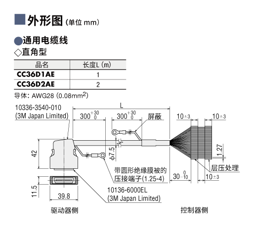 | 說(shuō)明 | 電纜線一端配備了可與驅(qū)動(dòng)器簡(jiǎn)單連接的半間距連接器的附屏蔽電纜線。 |