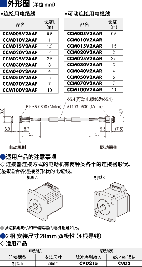 | 說明 | 連接器連接方式電動機(jī)與驅(qū)動器直接連接用的可動電纜線。請于電動機(jī)安裝在可動部,電纜線需彎曲時使用。兩端帶連接器,長0.5 m |