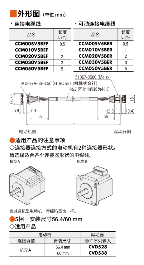 說明 連接器連接方式電動機(jī)與驅(qū)動器直接連接用的電纜線。兩端帶連接器,長0.5 m