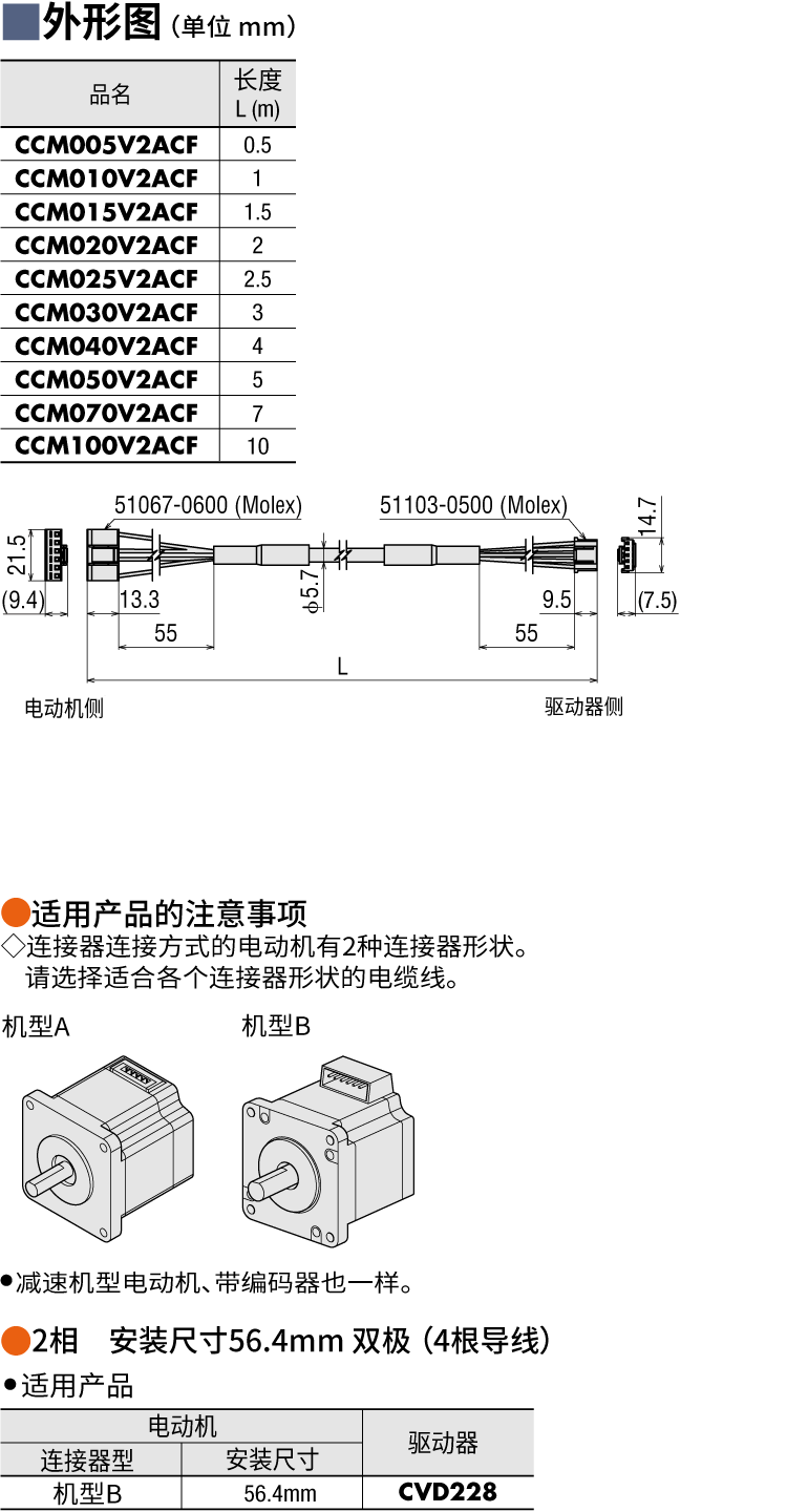 說明 連接器連接方式電動機與驅(qū)動器直接連接用的電纜線。兩端帶連接器,長5 m