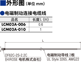 | 說明 | 電磁制動連接用、連接器已壓接、長度1 m |