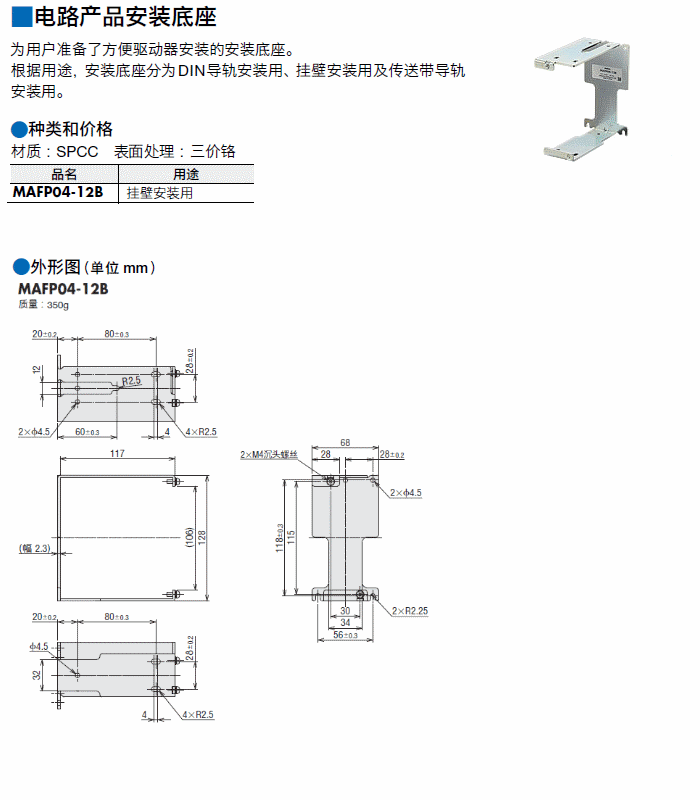 說(shuō)明 可以將電路產(chǎn)品直接安裝在上面、背面、下面的底座。