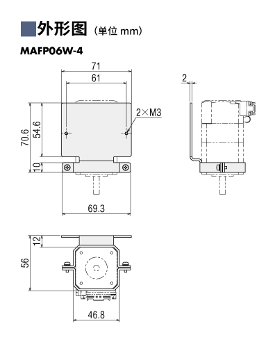 說明 可以將AZ系列mini驅(qū)動器(AZD-KR2D除外)安裝在AZ系列連接器型安裝尺寸為42 mm的電動機(jī)側(cè)面的底座。