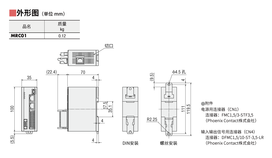 • 控制電路: 電源用連接器 (CN1)、輸入輸出信號用連接器 (CN4)