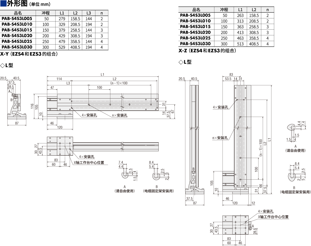| 說(shuō)明 | EZS4與EZS3的組合 L型 2軸側(cè)行程50 mm |