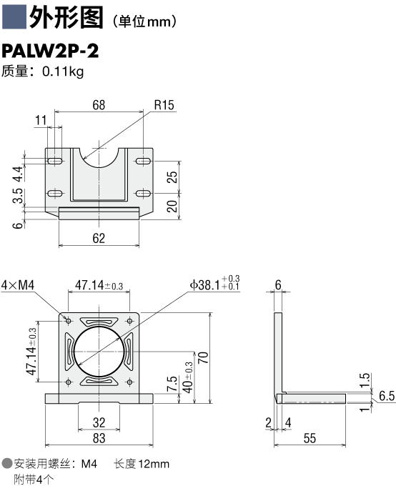 | 說明 | 安裝尺寸56.4/60 mm電動機用 L型底座。 |