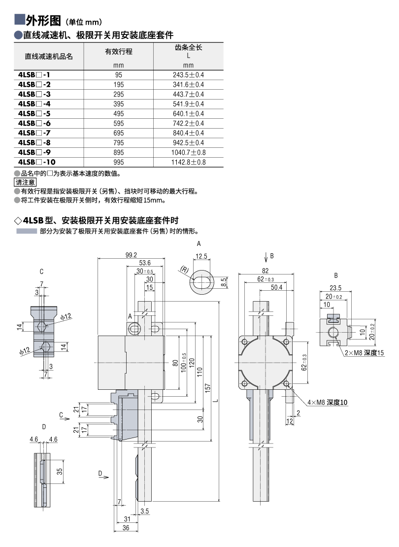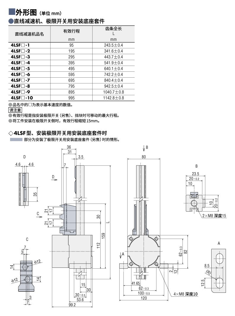 | 說明 | 極限開關(guān)用安裝底座、擋塊 (4個)、護(hù)蓋 |