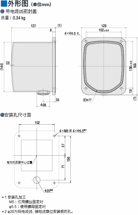 說明 保護(hù)電動(dòng)機(jī)的外蓋。對(duì)應(yīng)保護(hù)等級(jí)IP66規(guī)格,在水和灰塵飛散的環(huán)境中也可以使用。
