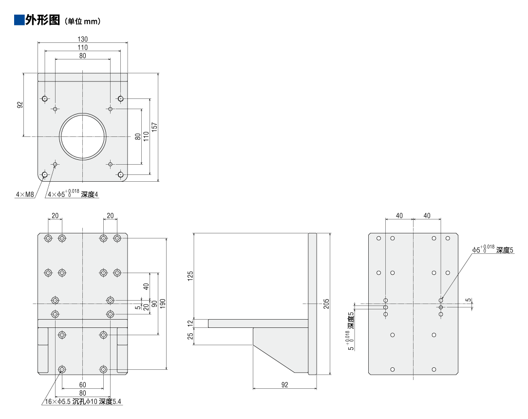 | 說(shuō)明 | 可用于3軸SCARA機(jī)器人的安裝底座。(FESTO K.K.生產(chǎn)的傳動(dòng)裝置EGC-HD-125-BS用) |
