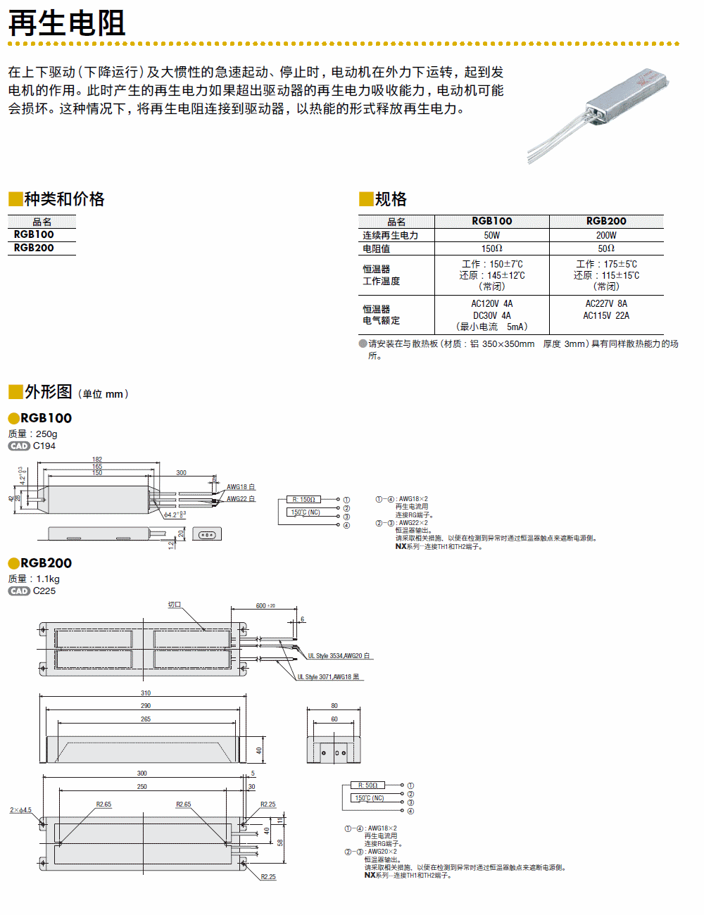 說(shuō)明 進(jìn)行上下驅(qū)動(dòng)或大慣性驅(qū)動(dòng)時(shí),與驅(qū)動(dòng)器連接,再生電力以熱能量形式釋放。