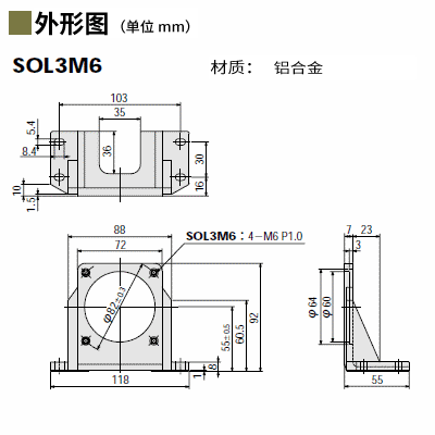 說明 安裝尺寸70 mm用 材質(zhì):鋁合金