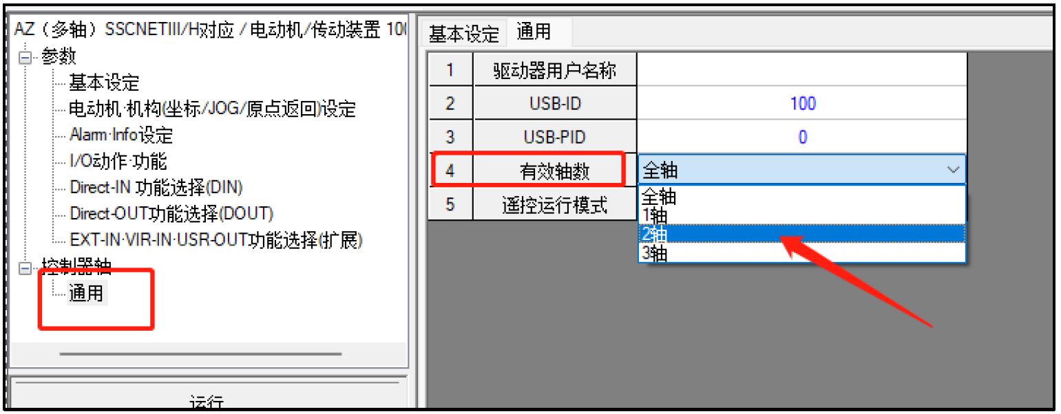 b.左側(cè)信息欄選擇“通用”→“4 有效軸數(shù)”,根據(jù)實際使用軸情況設(shè)定。