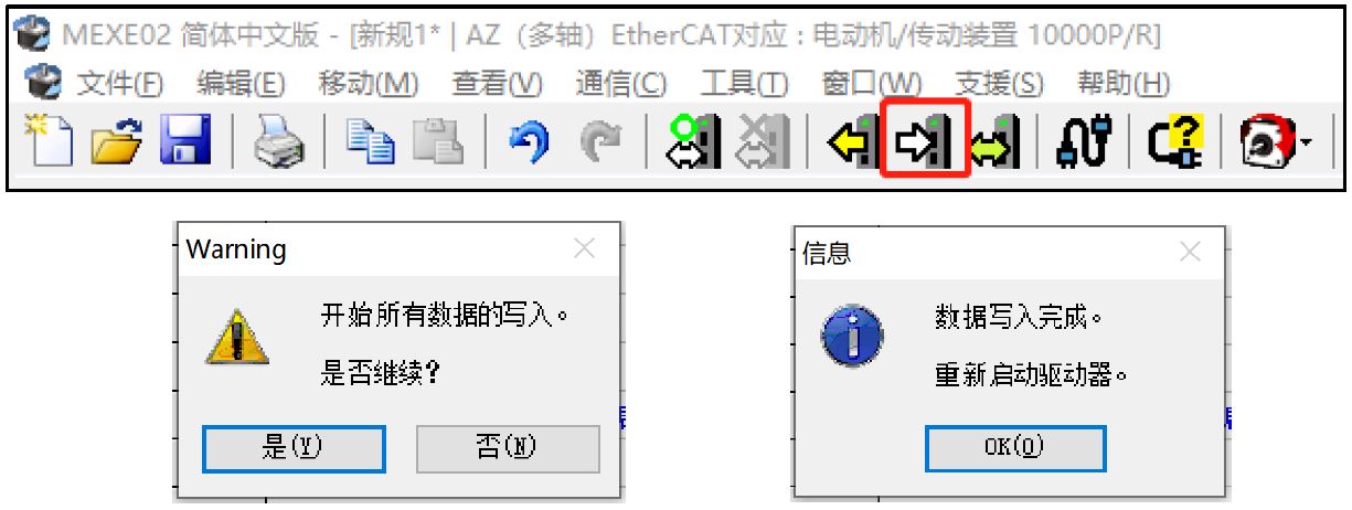 STEP3:點擊“數(shù)據(jù)寫入”,確認(rèn)并根據(jù)提示重啟驅(qū)動器,重啟驅(qū)動后設(shè)定生效。