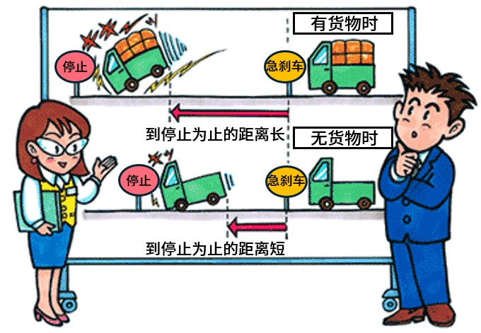 是的。例如,載有貨物的卡車和沒有載貨的卡車,在相同速度下緊急停止時,載有貨物的卡車停止的距離會更長。同樣,負載轉動慣量大的電動機,其過轉也會更大。
