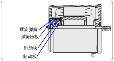 在轉子上有制動板,通過壓推這個剎車片來制動。